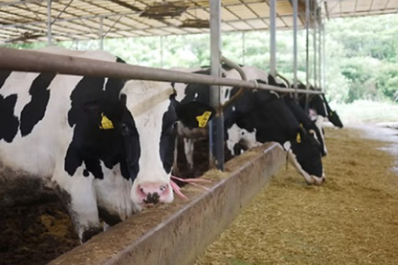 ・玄界灘からの海風が吹き抜ける牧場で快適に過ごすホルスタインから、毎日2回搾乳
