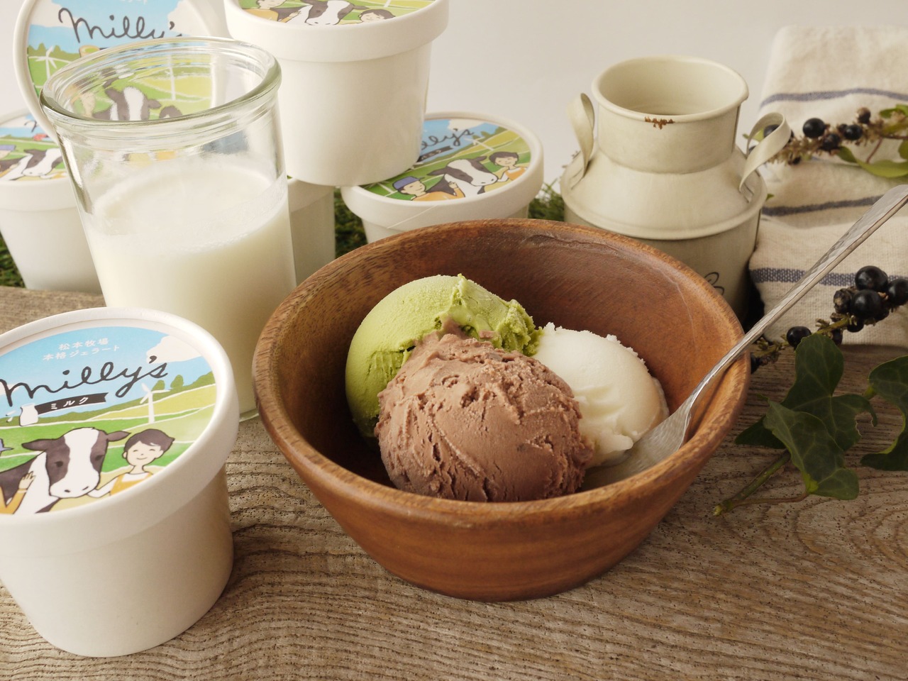 牧場敷地内にある工房の本場イタリア製ジェラートマシンで、搾りたて生乳と地元生産者から直接仕入れた新鮮な地元産農産物を使い、職人が一つ一つ丁寧な手仕事で製造しているクラフトアイス。なめらかできめ細やかに仕上げ、濃厚でコクがあるのにさっぱりした口あたりが特長。
