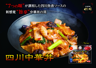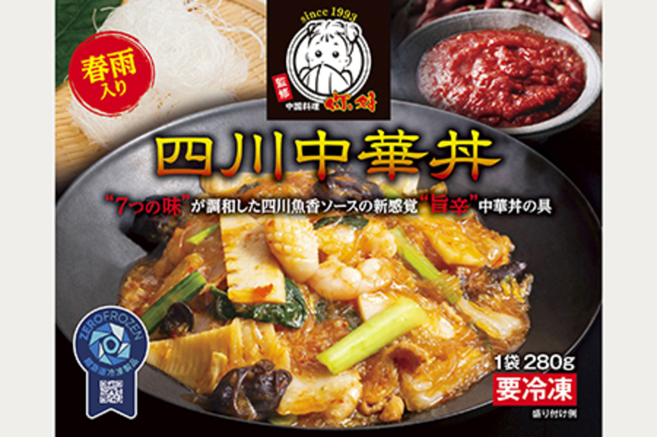 一般的な醤油やオイスターソースベースではなく、四川料理では王道の魚香(ユイシャン)ソースを独自にブレンド。四川料理の基本である「麻(しびれ)」「辣(辛味)」「甜(甘味)」「酸(酸味)」「鹹(塩味)」「苦(苦味)」「香(香り)」の7つの味を堪能できる新感覚“旨辛”中華丼です。中華丼の具としては珍しい春雨を使用し、食感も楽しめる食べ応え抜群の逸品です。